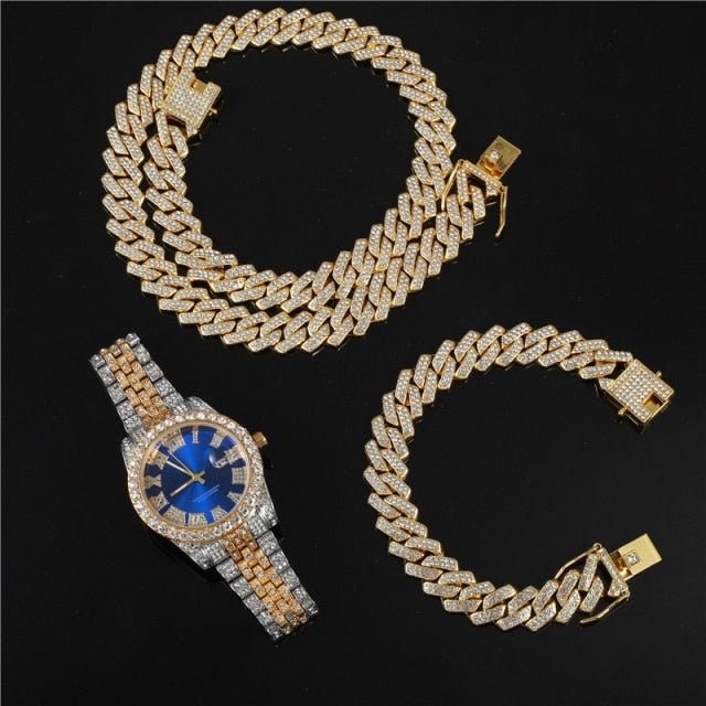 The perfect addition to any jewelry collection! A new style of Cuban Link plus a stunning watch the best way to get the most bang for your buck.