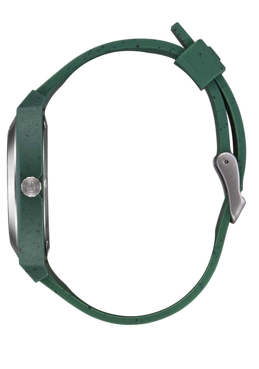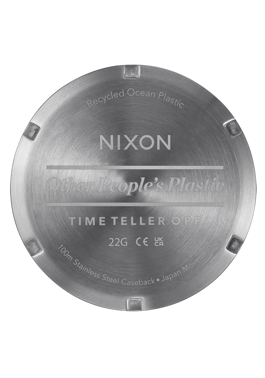 An icon of Nixon heritage just got an environmental upgrade. Now loaded with vibrant colors and a super supple silicone strap, the minimalist design is the perfect piece for your own aesthetic expression. Painted hands and indices provide easy visibility. Plus, it's made with Other People's Plastic, injecting sustainability into a classic. You down?